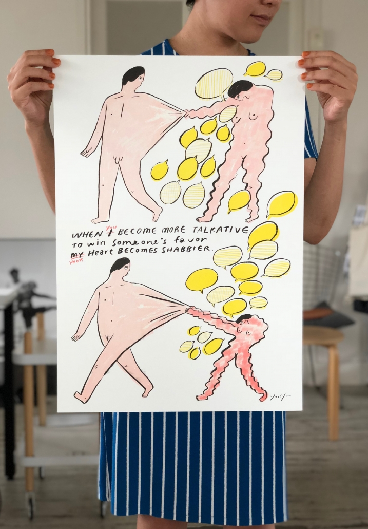 Ich arbeite mit internationalen Kunden in verschiedenen Bereichen wie Publikationen, Plakate und Werbung. Ich interessiere mich auch für verschiedene Veränderungen in der Welt und versuche herauszufinden, ob ich der Welt durch meine Zeichnungen eine wirkungsvolle Botschaft vermitteln kann.