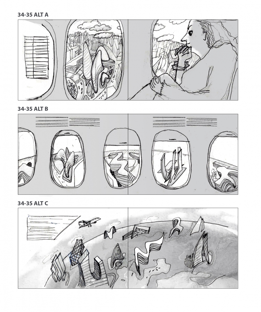 Schwarz-Weiß-Skizze für „Zaha baut“