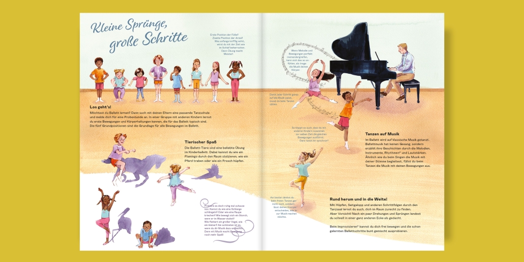 Dieses wunderschön illustrierte Kinderbuch nimmt uns mit in die faszinierende Welt des Balletts. Von den ersten Tanzschritten bis zu den schönsten Stücken und berühmtesten Ballerinen – hier entdecken Kinder ab 5 Jahren alles, was es über das Ballett zu wissen gibt.