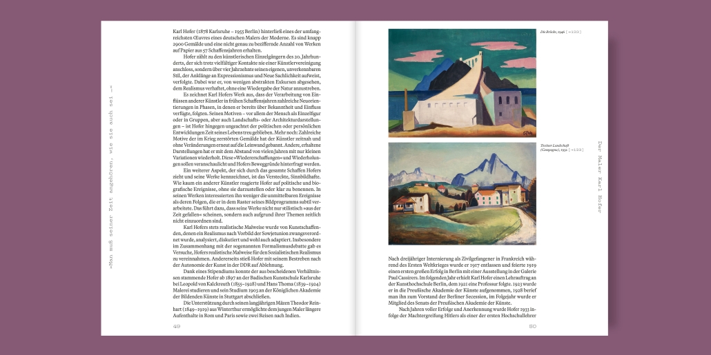 Daran anknüpfend geht das Buch der Bedeutung nach, die der in Westdeutschland erfolgreiche Maler nach 1945 für die Kunst im Osten Deutschlands hatte. Parallel im Osten und Westen der Republik orientierten sich Künstler:innen von der zweiten Hälfte des 20. Jahrhunderts bis in die Gegenwart stilistisch oder motivisch am Œuvre Hofers. Sein Einfluss reicht von Willi Baumeister oder Ernst Wilhelm Nay zur Halleschen Schule mit Hofer-Protegé Herrmann Bachmann, Fritz Baust und Kurt Bunge bis zur Leipziger und Neuen Leipziger Schule mit Doris Ziegler und Neo Rauch und wird in zahlreichen Gegenüberstellungen greifbar.