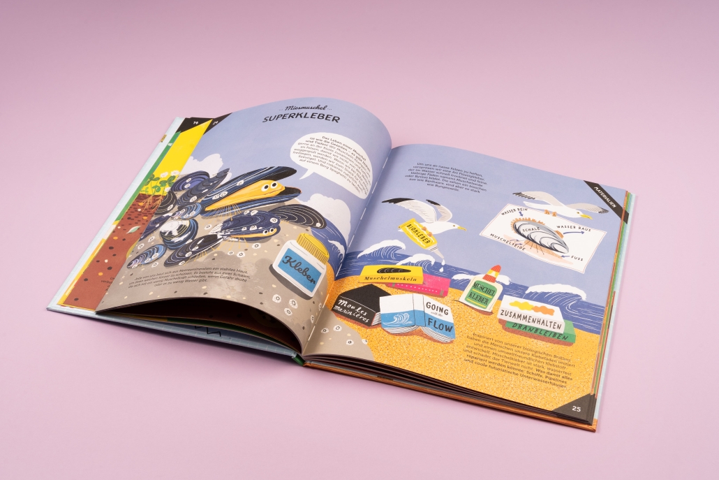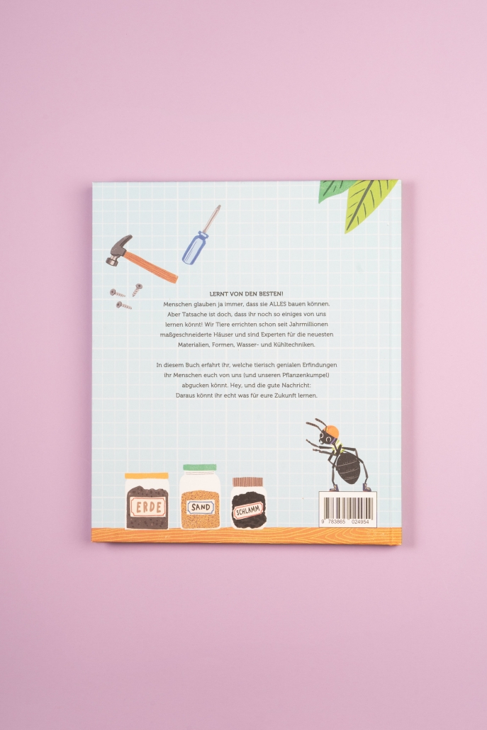 Unterhaltsam und bunt präsentiert dieses Kindersachbuch die innovativen Techniken, Formen und Materialien, mit denen Säugetiere, Vögel, Insekten und Meereslebewesen ihre Häuser bauen oder sich wahnsinnig effektiv an ihre Umwelt anpassen. Es zeigt spielerisch, wie die Menschen seit Jahrhunderten Ideen aus der Tierwelt nachahmen, um bessere Häuser, Städte, Brücken oder Straßen zu bauen. Von den konstruktionsverstärkenden Wabenformen der Bienen bis hin zu umweltfreundlichen Verpackungen von Vogel, Frosch und Schmetterling – diese Lebewesen haben es zuerst erfunden! Dass der Ideenklau auch für unsere Zukunft äußerst bedeutsam sein kann, ist ein weiterer Aspekt dieses vor Rekorden nur so strotzenden Buches. Über die widerstandsfähigsten Panzer, die flexibelsten Fäden und den klebrigsten Leim aus der Tierwelt lässt sich bei dieser Gelegenheit hervorragend staunen.