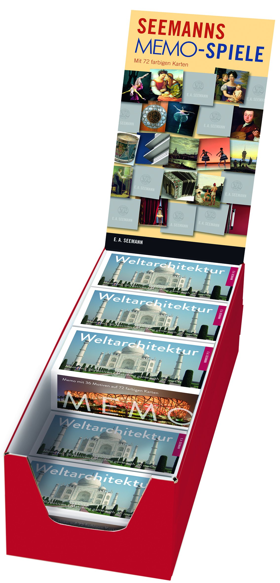 Dome, Tempelanlagen, Ruinenstädte, Schlösser, Mausoleen und Museumsbauten aus aller Welt sind in tollen Detailaufnahme oder starken Gesamtansichten auf den Spielkarten zu finden. Zugleich bietet das Memo einen Überblick über namhafte Architekten von einst bis jetzt: Filippo Brunelleschi, Frank Lloyd Wright, Frank Gehry, Ieo Ming Pei, Oskar Niemeyer, Renzo Piano und viele andere sind dabei. Auch renommierte Büros sind vertreten, so zum Beispiel Herzog & de Meuron, die spektakuläre, preisgekrönte Architekturen entwarfen.
