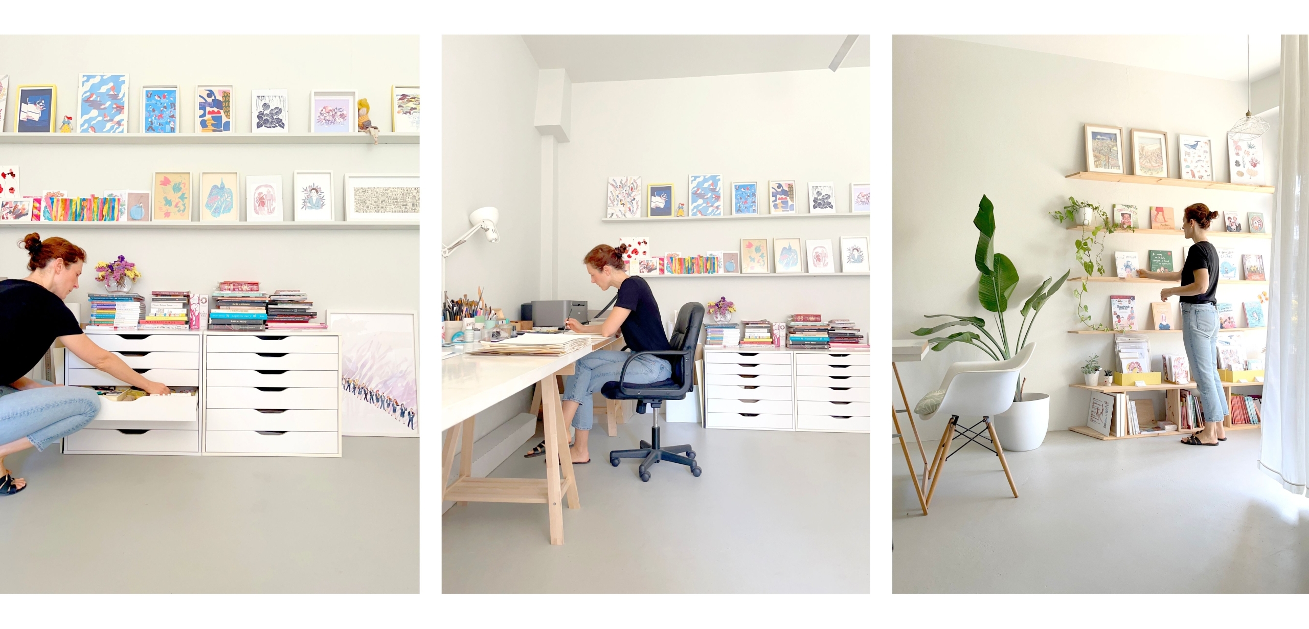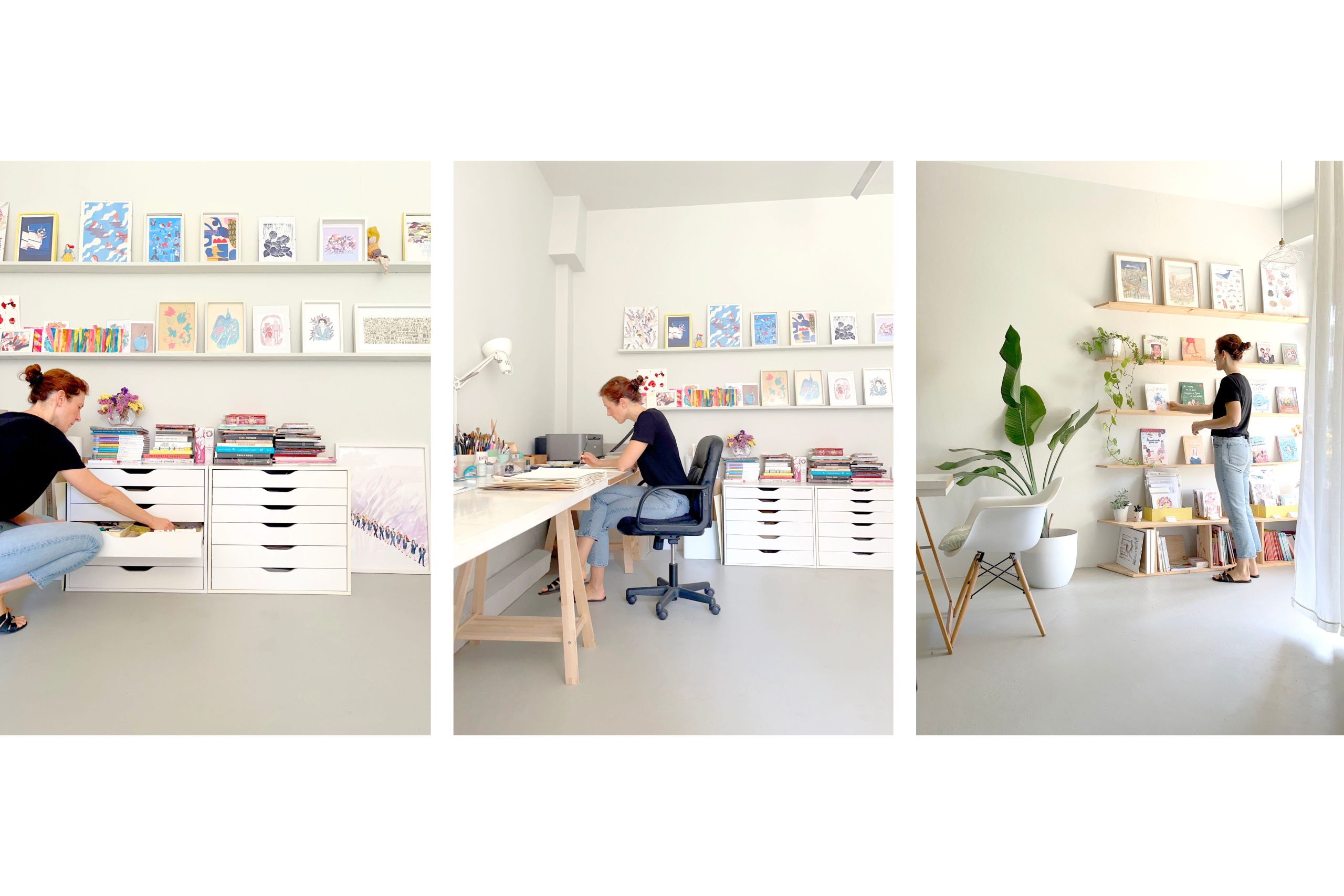 Neben den Bilderbüchern entwickle ich Illustrationen für andere Kunden wie Marken und Unternehmen und arbeite auch an meinen persönlichen Projekten und Goodies, um meinen kleinen Laden zu füllen, den ich in mein Studio integriert habe.
